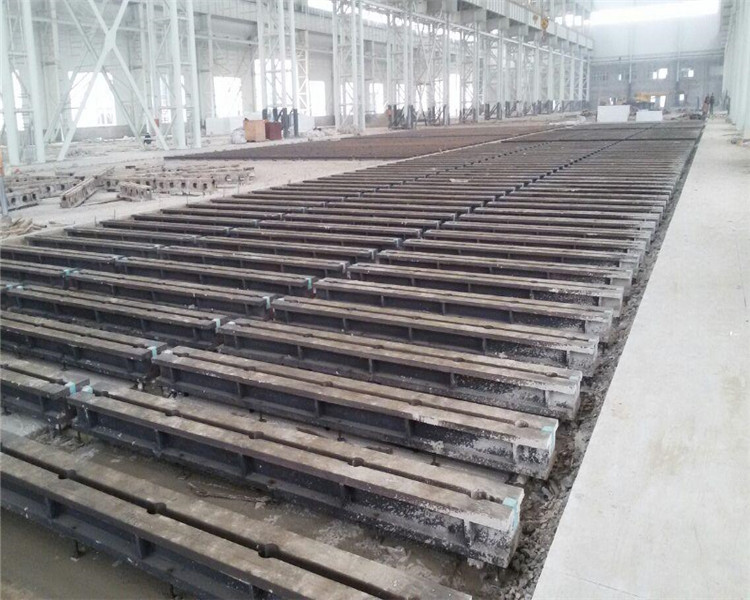 重型地軌采用優(yōu)質(zhì)高強度灰口鑄鐵HT200-250,工作面硬度為HB170-240,鑄件經(jīng)過兩次人工退火600℃-700℃或自然時效2-3年,完全去除內(nèi)應力,精度穩(wěn)定,耐磨性能好。重型地軌根據(jù)設(shè)備的固定點來設(shè)計、拼接成鑄梁平臺,主要用于大型設(shè)備的裝配、試驗、焊接和檢驗。